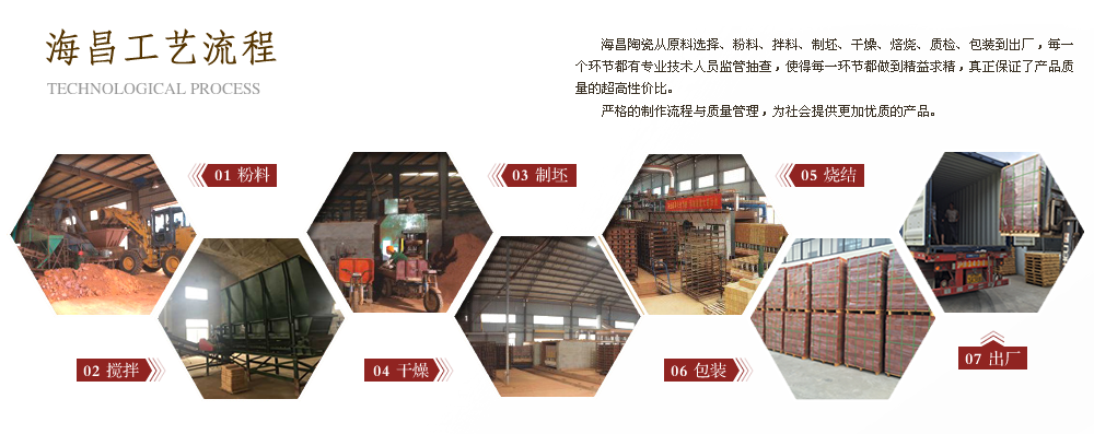 天然陶土經大型真空機擠出成型,經鋼絲拉面制成,色彩自然,永不褪色...